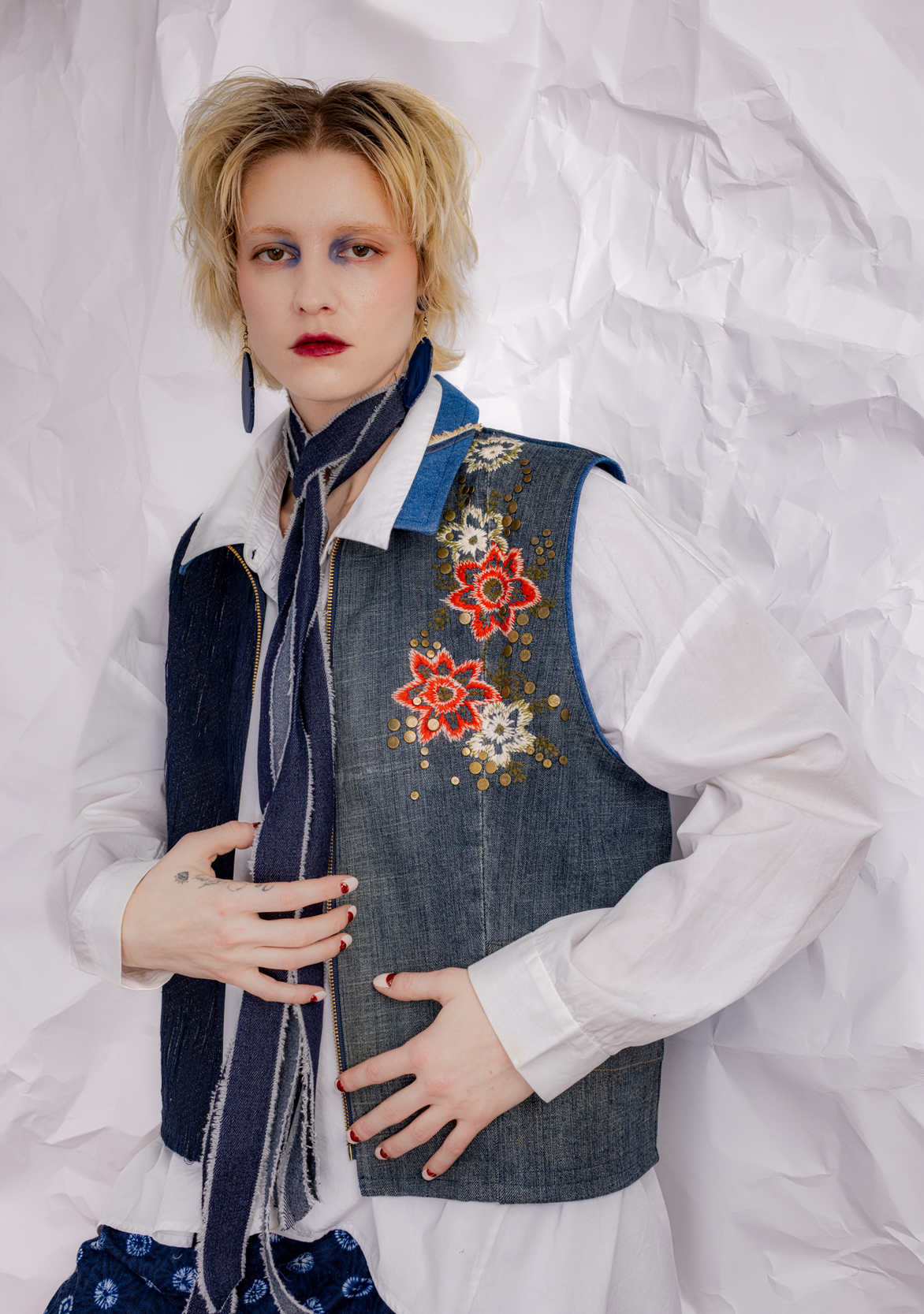 This collection embraces an eco-conscious ethos with handmade items that embody both luxury upcycling and comfort. My stitches are like rivers, separating and uniting the landscapes of your clothing.